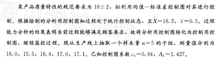 问题 该过程标准差的估计σ 为( )。 A. 0. 6 B.0. 532 C. 0. 47 D.0. 35