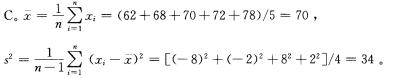 对5袋粮食进行称重,获得如下数据:62,68,70,72,78 (单位:kg),样本方差为()。A. 70.0 B. 60.5C. 34.0 D....