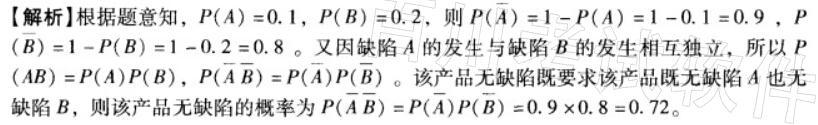 某产品可能出现A与B两种缺陷,如果出现缺陷A的概率是0.1,出现缺陷B的概率是0.2,缺陷A的发生与缺陷B的发生相互独立,则该产品无缺陷的概率是()。[2...