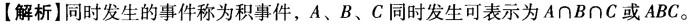 设A、B、C为三件随机事件,则A、B、C同时发生可表示为( )。