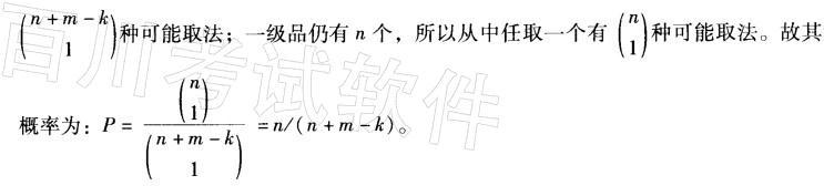 在库房存放的零件里,有n个一级品,有m个二级品,现在逐个进行检查,若巳检测的前k个都是二级品,则检测第k+1个时,是一级品的概率为( )。A. (n-...