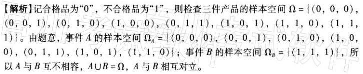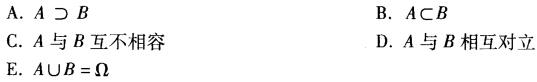 问题 从一批产品中随机抽取3个,记事件A “至少有一个是合格品”与事件B“都是不合格品”,以下叙述正确的有( )。[2007年真题]