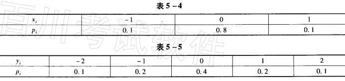 问题 甲乙两种品牌的手表,它们的日走时误差分别为x与y(单位:秒)。已知x与y的分布分别如表5 - 4和表5 - 5所示,则下列表达式错误的有( )。