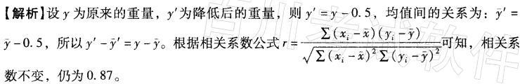 某种零件的长度与重量的相关系数为0.87。如果每个零件的重量降低0.5克,那么调整后零件的长度与重量的相关系数是( )。A. -0.87 B. 0.3...