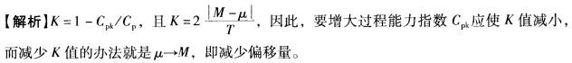 问题 已知某零件加工的过程能力指数Cp = 1.67, Cpk = 1. 00。 若该过程的Cp不变,如果顾客要求过程能力指数Cpk≥1. 33,则应当采取什么改进措施最合理?( ) A.缩小分散程度 B.放宽公差带 C.加强质量检验 D.减少偏移量