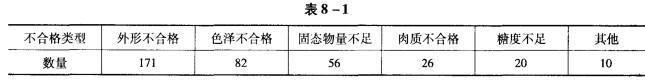 问题 某食品加工厂7月份生产的罐头产品中有358瓶不合格,对其不合格的类型和数量进行了统计,统计结果如表8-1所示。根据排列图原理,属于A类因素的有( )。[2008年真题] A.外形不合格、色泽不合格、固态物量不足 B.外形不合格、色泽不合格 C.外形不合格 D.糖度不合格