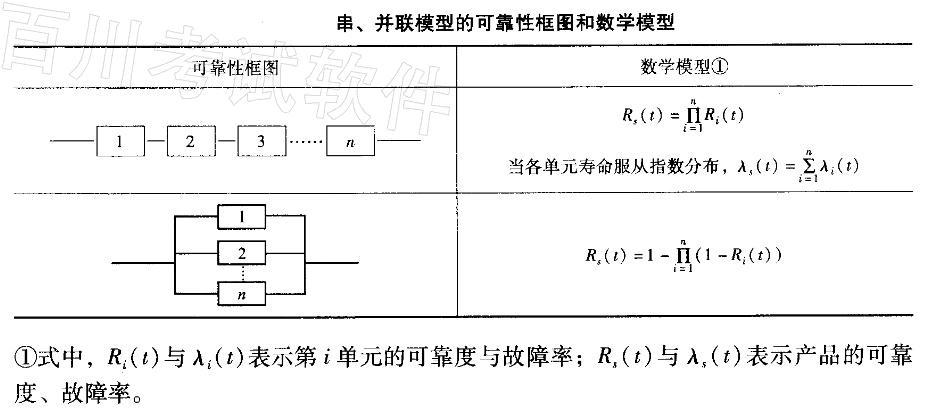 解析 串、并联模型的可靠性框图和数学模型如表所示。则系统可靠度=1 - (1 -0.9)2 =0. 99。