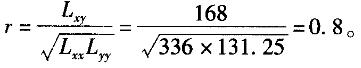 问题 在变量Y表示对X进行回归分析时,根据10对观测值(xi,yi), i =1, 2,…10,算得如下结果:,Lxx=336,Lxy=131.25,Lyy=168。 请回答下列问题。 X与Y的样本相关系数r为( )。 A. -0.8 B. 0.8 C. 0.64 D. 0.5