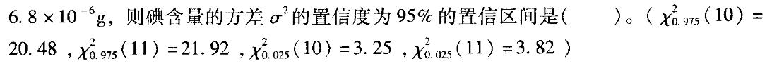 食盐中碘的含量服从正态分布,从中抽取容量n=11的样本,测得=34x10-6g, s = A. [21.09X 10-12, 121.05 x 10-12...