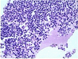 患者男,26岁,鼻腔肿瘤3个月,取活检,镜下显示如下图。(仅供病理专业医师参考)??根据组织象及所给出的免疫组织化学染色MyoD-1,可以符合的诊...