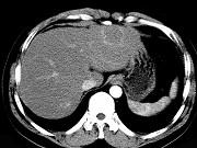 男54岁,B超体检示肝左叶强回声团块影,CT表现如图,最可能的诊断是()A.肝癌B.肝腺瘤C.肝母细胞瘤D.肝血管瘤E.肝脓肿