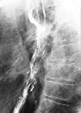 问题 女性患者,67岁,进行性吞咽困难半年,X线及CT检查如图,应诊断为()