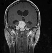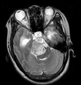 问题 女,32岁,头痛、右侧肢体功能障碍约1年,声间嘶哑,饮水呛咳,请根据所提供图像,选择最可能的诊断()