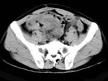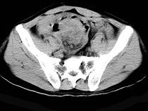 58岁,间断腹部隐痛9个月,贫血3个月,近日加重并伴有柏油样便,CT所见如图,最可能诊断是()A.小肠淋巴瘤B.小肠恶性间质瘤C....