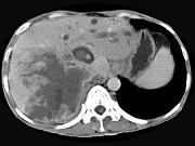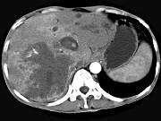 男,44岁,右上腹痛半年,腹部未触及包块,轻度黄疸,AFP阴性,CT检查如图,最可能的诊断为()A.原发性肝癌B.胆管细胞癌C.肝...