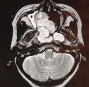 女性,41岁,鼻腔流脓涕3年,鼻部面部肿胀1年,近来加重,MRI检查如图,请选择最可能诊断()A.鼻腔内囊肿B.鼻腔内出血C.鼻腔...