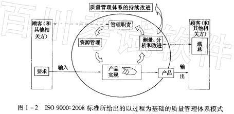 解析 ISO 9000: 2008标准给出的以过程为基础的质量管理体系模式所确定的四个过程的顺序如图1-2所示。