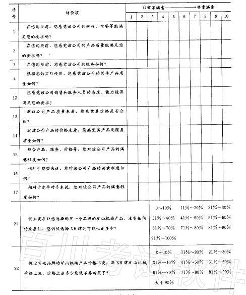 ZH机械制造总厂聘请第三方咨询机构对其生产的XR牌矿山机械产品进行全国 顾客满意度调查,此次顾客满意度专项调查由品牌形象、预期质量、感知质量、感知 价值、...