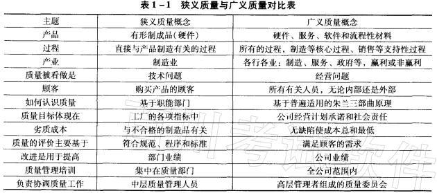 关于广义质量概念与狭义质量概念的对比,下列说法不正确的是( )。A.以产品为主题,狭义质量概念指有形制成品(硬件),广义质量概念指硬件、服务、 软件和...