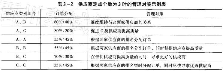 解析 对于供应商定点个数为2的情况,订单分配与管理对策如表2 - 2所示。