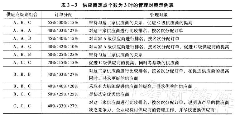 解析 对于定点个数为3的情况,二类供应商的组合情形较多,订单分配与管理对策如 表2 - 3所示。