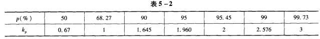 解析 正态分布的置信水平P与包含因子kp之间的关系如表5 -2所示。