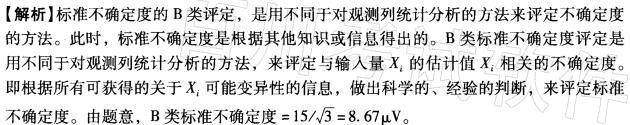 问题 B类标准不确定度为( )。 A. 8. 67μV B. 12μV C. 15μV D. 123μV
