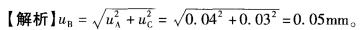 问题 某公司对某仪器的尺寸测量如图5-2所示,为测量尺寸lB,先采用卡尺测得尺寸lA和 尺寸 lC分别为 29. 95mm 和 16. 52mm,而 lB = lA - lC = 13. 43mm。 若尺寸lAa和lC是分别独立测得的,此时测量不确定度uA = 0. 04mm,uc = 0. 03mm,则uB ( )o A. 0. 02mm B. 0. 04mm C. 0. 05 mm D. 0. 08 mm