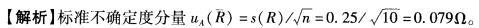问题 在某电子设备的生产中,需要使用100(1的低值电阻器,设计要求其最大允许误差应在 ±0.1%以内。测量方法是用一台数字多用表对被测电阻器的电阻进行直接测量。已知该数 字多用表经检定合格,且其技术指标如下: 最大允许误差为:± (0. 05% ×读数+3 ×最低位数值); 测量所用档的满量程值为199. 9Ω,最低位数值为0. 01Ω; 当环境温度在(20 ±5)1时,温度的影响可忽略。 在22℃,实测10次,得到的样本均值及=99.8Ω,s(R))=0.25Ω。 标准不确定度的A类分量为( )Ω。 A. 0.025 B. 0.079 C. 0.25 D. 0. 79