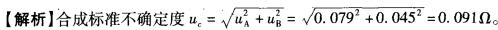 问题 在某电子设备的生产中,需要使用100(1的低值电阻器,设计要求其最大允许误差应在 ±0.1%以内。测量方法是用一台数字多用表对被测电阻器的电阻进行直接测量。已知该数 字多用表经检定合格,且其技术指标如下: 最大允许误差为:± (0. 05% ×读数+3 ×最低位数值); 测量所用档的满量程值为199. 9Ω,最低位数值为0. 01Ω; 当环境温度在(20 ±5)1时,温度的影响可忽略。 在22℃,实测10次,得到的样本均值及=99.8Ω,s(R))=0.25Ω。 合成标准不确定度为( )Ω。 A. 0.91 B. 0. 091 C. 0.079 D. 0.046