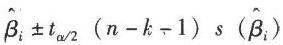 回归系数βi在(1-α)%的置信水平下的置信区间为( )。