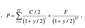解析 对于半年付息一次的债券来讲 其中,P代表债券价格;C代表现金流金额;y代表到期收益率;T代表债券期限(期数);t代表现金流到达时间(期)。