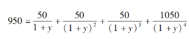 问题 某债券的面值1000元,票面利率为5%,期限为4年,每年付息一次。现以950元的发行价向全社会公开发行,则该债券的到期收益率为()。