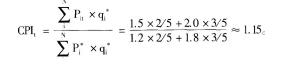 问题 在一个封闭的经济体里,计算CPI的最终产品只有A、B两种商品,比重为2:3。基准年A商品的价格为1.2元,B商品的价格为1.8元。2015年,A商品的价格变为1.5元;B商品的价格为2.0元,则该年度CPI为(  )。