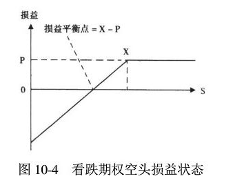 解析 卖出看跌期权最大损益结果或到期时的捌盏状况见图10-4。因此,当标的资产价格高于损益平衡点时,卖方一定盈利。