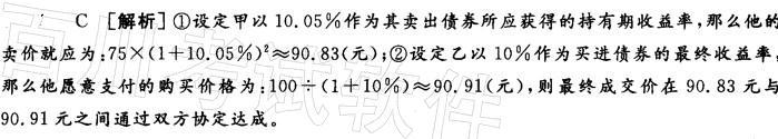 问题 甲以75元的价格买入某企业发行的面额为100元的3年期贴现债券,持有2年以后试g 以10. 05%的持有期收益率将其卖给乙,而乙意图以10%作为其买进债券的最终收益率 那么成交价格为( )。 A. 91.58 元 B. 90.91 元 C.在90. 83元与90. 91元之间 D.不能确定