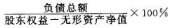 解析 有形资产净值债务率=,将题中数据代入公式,得出B项。