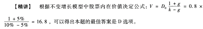 解析 【考点提示】本题是对不变增长模型中股票内在价值的计算公式的考査。