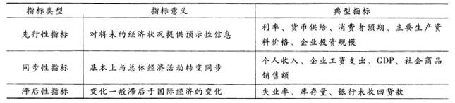 解析 经济指标分为如下三类,其意义和相应的典型指标如表所示: