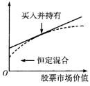 解析 B选项表示的是市场保持上升或下降趋势时,恒定混合策略支付图;C选项表示的是市场先下降后上升时,恒定混合策略支付图;D选项符合题意。