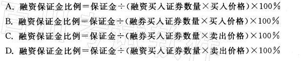 解析 融资保证金比例=保证金+(融资买入证券数量X买入价格)X100%。
