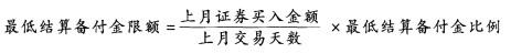解析 最低备付指结算公司为资金交收账户设定的最低备付限额,结算参与人 在其账户中至少应留足该限额的资金量。最低备付可用于完成交收,但不能划出。如果用于交 收,次日必须补足。计算公式为: