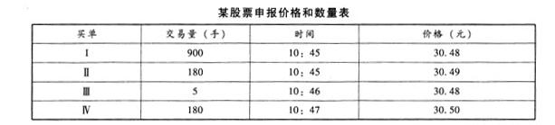 问题 假设2009年7月7日某只股票有如表所示的4个买单,那么成交顺序为()。