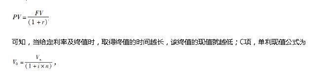 解析 B项,根据复利现值公式 在其他条件相同的倩况下,按单利计息的现值要高于用复利计息的现值;D项,利率为正时,现值小于终值。