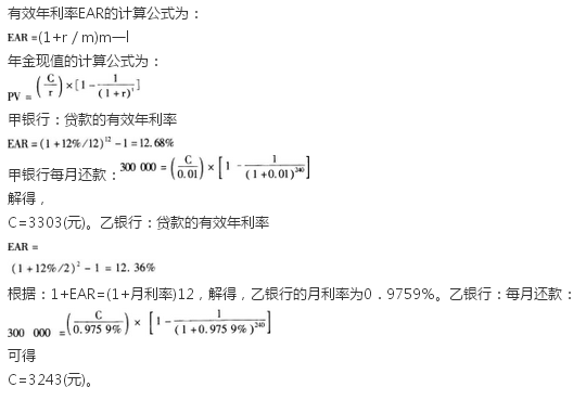 问题 客户王先生通过按揭贷款方式买房,计划贷款30万元,贷款期限20年,按月等额本息还款。他可以选择甲、乙两家银行:甲银行贷款利率是12%,按月计息;乙银行贷款利率是12%,按半年计息。下列说法正确的有( )。 Ⅰ 甲银行贷款的月还款额较大 Ⅱ 乙银行贷款的月还款额较大 Ⅲ 甲银行贷款的有效年利率较高 Ⅳ 乙银行贷款的有效年利率较高