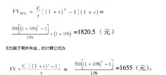 解析 初年金指在一走时期内每期期初发生系列相等的收付款,即现金流发生在当期期初。期末年金即现金流发生在当期期末。题中,A方案属于期初年金,的计算公式为: 故第三年末两个方案的终值相差166元。