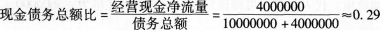 解析 现金债务总额比是经营现金净流量与负债总额的比值,即: