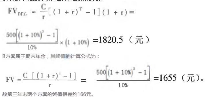 解析 期初年金指在一走定时期内每期期初发生系列相等的收付款,即现金,流发生在当期期初。期末年金即现金流发生在当期期末。题中,A方案属于期初年金,其终值的计算公式为: