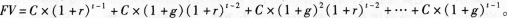 解析 增长型年金(等比增长型年金)是指在一定期限内,时间间隔相同、不间断、金额不相等但每期增长率相等、方向相同的一系列现金流。增长型年金终值的计算公式为: