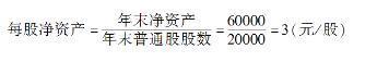 解析 年末净资产=年末总资产-流动负债-长期负债=160000-40000-60000=60000(万元),因此根据每股净资产的计算公式可得: